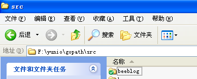 Let's proceed by assuming that our GOPATH points to a folder with with an ordinary directory name (if not, we can easily set up a suitable directory and set its path as the GOPATH). As we've describe earlier, a GOPATH can contain more than one directory: in Windows, we can set this as an environment variable; in linux/OSX systems, GOPATH can be set using export, i.e: export gopath=/path/to/your/directory, as long as the directory which GOPATH points to contains the three sub-directories: pkg, bin and src. Below, we've placed the source code of our new project in the src directory with the tentative name beelog. Here are some screenshots of the Windows environment variables as well as of the directory structure.